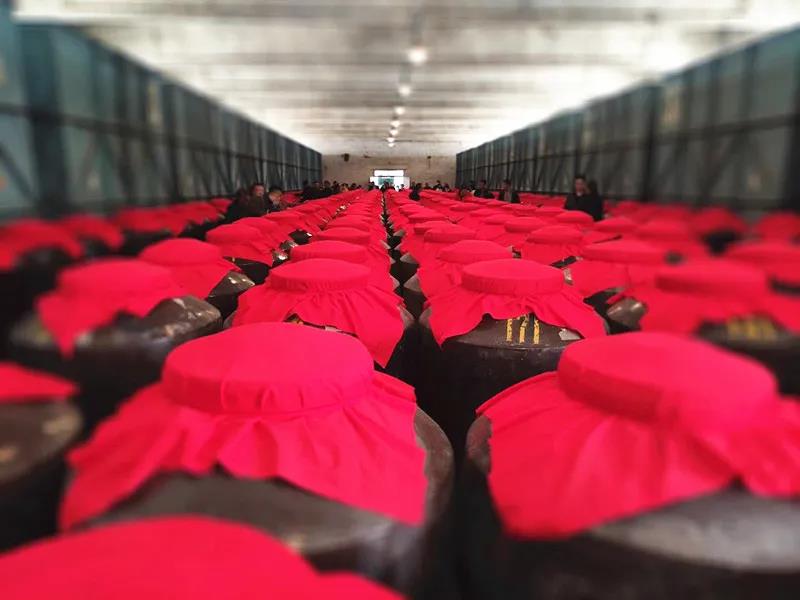 在半成品酒庫,客戶們參觀了規(guī)模宏大的陶壇以及酒海子,大家在排列有序的陶壇前拍照留影。客戶們感嘆:皇臺酒業(yè)竟然有如此陣勢宏大的貯酒陶壇,由此可見,涼州酒文化底蘊在此也。