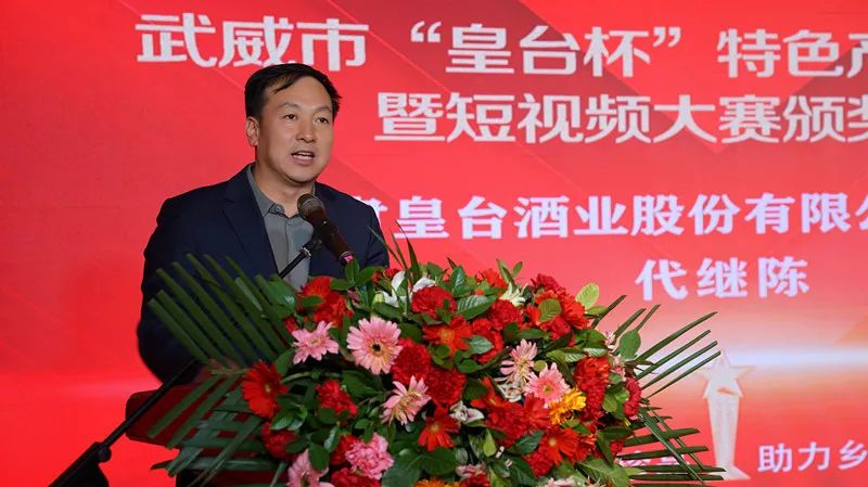 頒獎儀式上,皇臺酒業(yè)總經(jīng)理代繼陳代表公司向獲獎的參賽選手表示了衷心的祝賀。代總說:鄉(xiāng)村振興是國家戰(zhàn)略的重要組成部分,而特色產(chǎn)業(yè)的發(fā)展則是鄉(xiāng)村振興的重要支撐。皇臺酒業(yè)作為武威第一家集名優(yōu)白酒、名優(yōu)葡萄酒的上市公司,建廠至今始終堅持品質(zhì)至上的理念,以精益求精的工匠精神,鑄造了獨具特色的“皇臺酒”系列產(chǎn)品,是武威市特色產(chǎn)業(yè)的代表性產(chǎn)品,先后斬獲了“巴拿馬萬國博覽會特別金獎”“國際名酒”“中國馳名商標(biāo)”“布魯塞爾金獎”“中國酒類新品青酌獎”等上百項國內(nèi)外桂冠。如今,隨著互聯(lián)網(wǎng)技術(shù)的飛速發(fā)展,直播帶貨和短視頻已經(jīng)成為當(dāng)今商業(yè)營銷的重要手段?;逝_酒業(yè)贊助冠名此次短視頻大賽,旨在挖掘和培養(yǎng)更多的優(yōu)秀直播帶貨和短視頻創(chuàng)作者,通過直播帶貨活動,進(jìn)而大力推廣武威市的特色產(chǎn)品,為鄉(xiāng)村振興注入新的活力和動力,共同推動武威市特色產(chǎn)業(yè)的繁榮發(fā)展。
