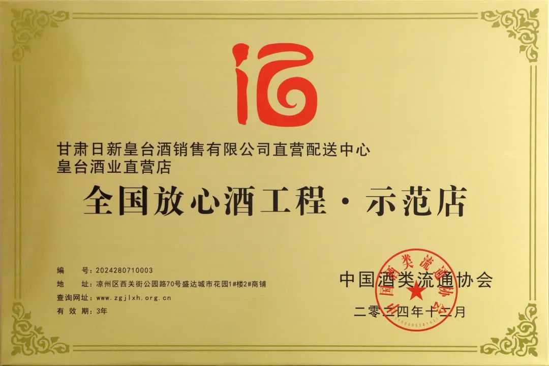 12月中旬,2024年中國酒類流通協(xié)會(huì)公布了全國放心酒工程示范企業(yè)(店)名單,甘肅皇臺(tái)酒業(yè)股份有限公司憑借優(yōu)異的品質(zhì)和信譽(yù),成功榮獲了全國放心酒工程·示范企業(yè)殊榮。與此同時(shí),甘肅日新皇臺(tái)酒銷售有限公司直營配送中心也因其優(yōu)質(zhì)的服務(wù)和管理,榮獲了全國放心酒工程·示范店稱號(hào)。