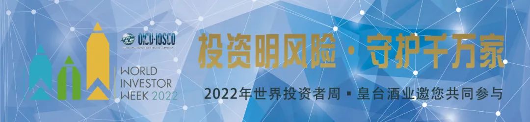 2022年10月8日-14日為“2022年世界投資者周”,本次活動(dòng)主題為“投資明風(fēng)險(xiǎn),守護(hù)千萬家”。為貫徹落實(shí)監(jiān)管部門投資者保護(hù)工作的部署要求,加強(qiáng)投資者教育保護(hù)的國際交流合作,積極響應(yīng)“2022年世界投資者周”活動(dòng)號(hào)召,皇臺(tái)酒業(yè)在監(jiān)管部門的指導(dǎo)下,將以“投資明風(fēng)險(xiǎn),守護(hù)千萬家”為主題,開展投資者教育和保護(hù)宣傳,面向投資者做好證券基金期貨知識(shí)宣傳普及,引導(dǎo)投資者學(xué)習(xí)金融知識(shí),樹立正確投資理念!
